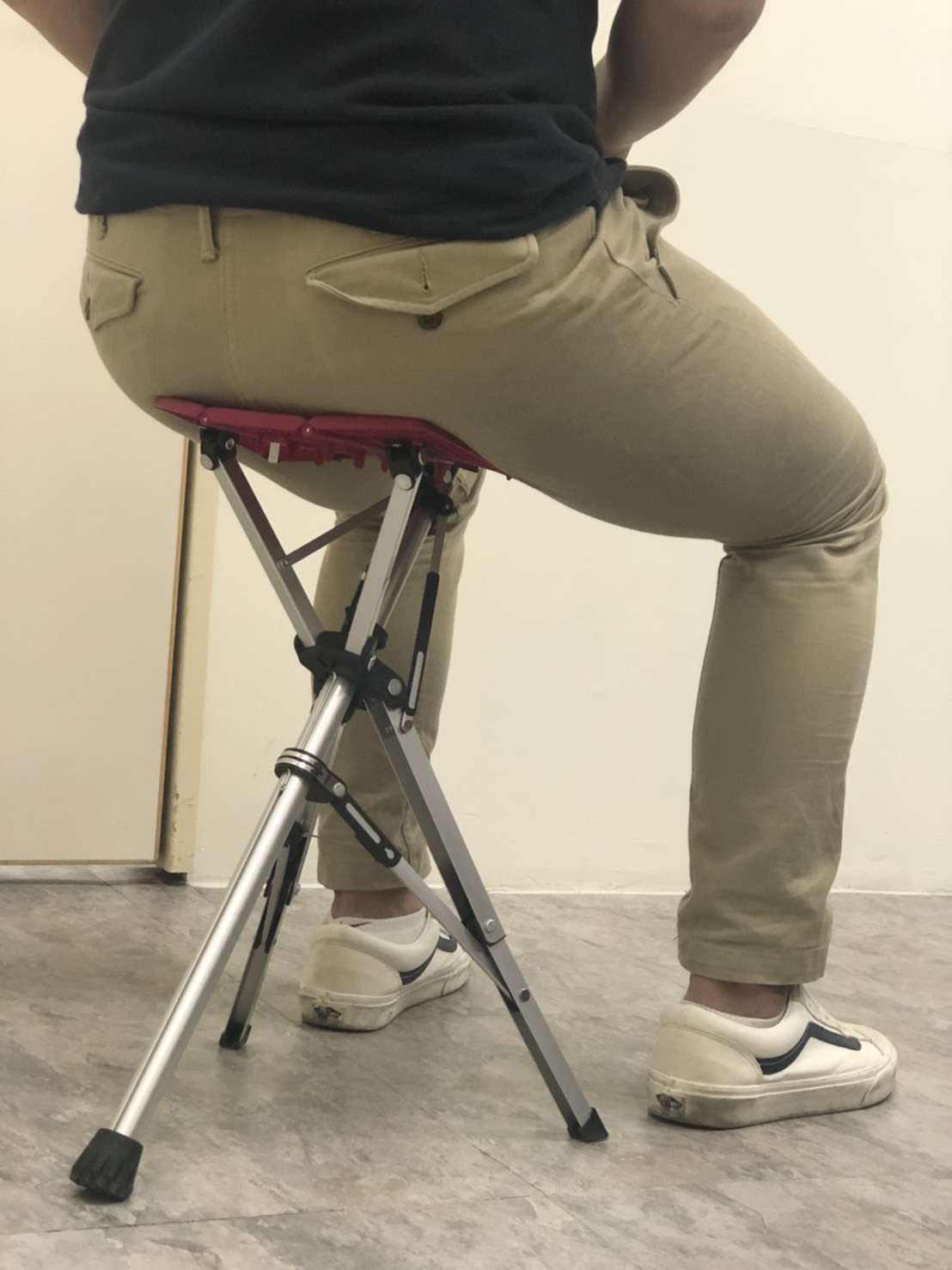รูปตัวอย่างการนั่งที่ถูกต้อง เมื่อกางเก้าอี้ออกมาแล้ว