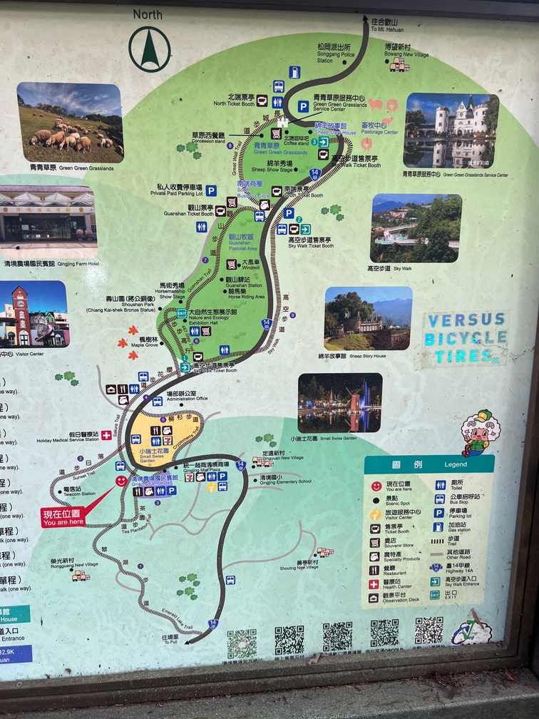 สำหรับการเดินเที่ยวในชิงจิ้ง จุดเริ่มต้นจาก Qingjing Guess House เราเลือกเดินไปเที่ยว Qingjing skywalk [หมายเลข 1 ในแผนที่] ที่จุดแรกก่อนแล้วพอเดินไปจนสุดทางของ skywalk ก็จะถึงทางเข้า Qingjing Green Green Grasslands [หมายเลข 3 ในแผนที่] หรือใครจะเลือกนั่งรถบัสไปเริ่มที่ Qingjing Green Green Grasslands เที่ยวฟาร์มแกะก่อนแล้วค่อยเที่ยว Skywalk ต่อก็ได้เหมือนกัน แต่เราขี้เกียจรอรถบัส ก็เลยเลือกที่จะเดินไปเที่ยวที่ skywalk ก่อนเลย