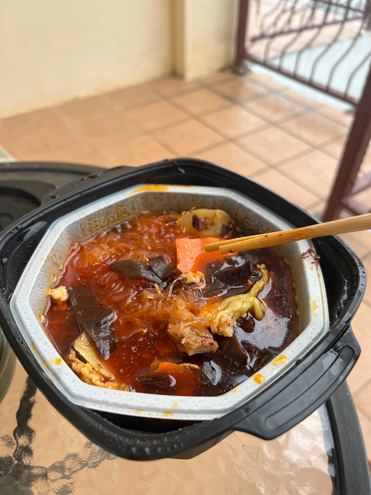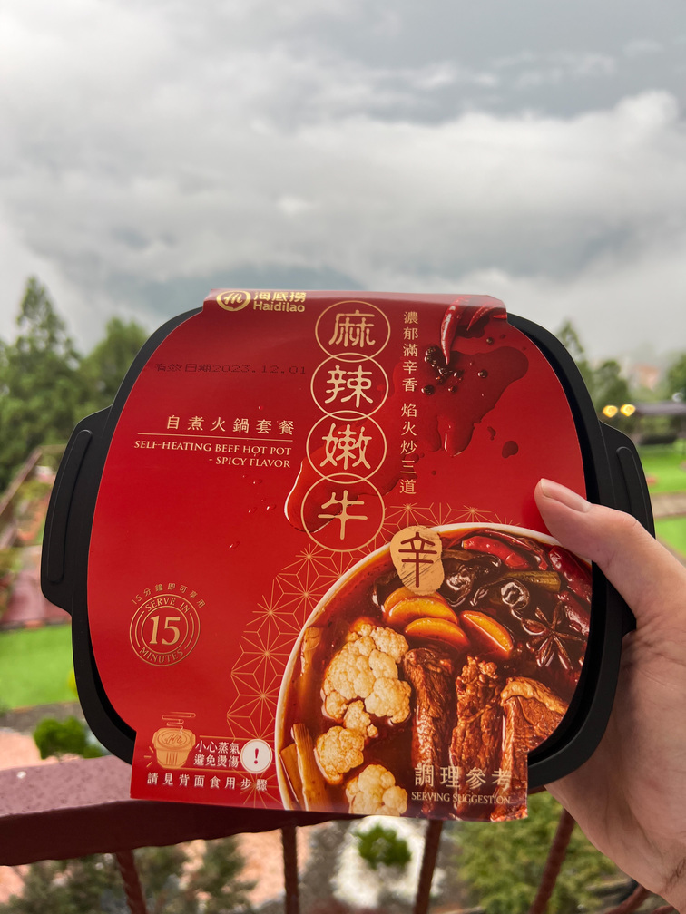 เป็นหมาล่าสำเร็จรูปจากไฮดีเหลา ได้ฟิลเหงาๆดี กินหมาล่าคนเดียวในบรรยากาศฝนตกและหมอกลง รสชาติดีมาก เผ็ดหมาล่าไม่ต่างกับที่กินในร้านหมาล่าเลย เวลาทำก็ง่ายมากๆ แค่ฉีกซอง ใส่เครื่องลงถ้วย และเติมน้ำเปล่าที่อุณหภูมิห้อง รอประมาณ 20-30 นาที ก็จะได้หมาล่าพร้อมรับประทาน แล้วตัวผลิตภัณฑ์เข้าออกแบบให้มันยังสามารถให้มันยังต้มต่อไปได้อีกพักใหญ่ๆ ไม่ต้องกลัวว่าหมาล่าจะเย็นเลย เรานั่งกินไปชั่วโมงกว่า ก็ยังร้อนปกติ