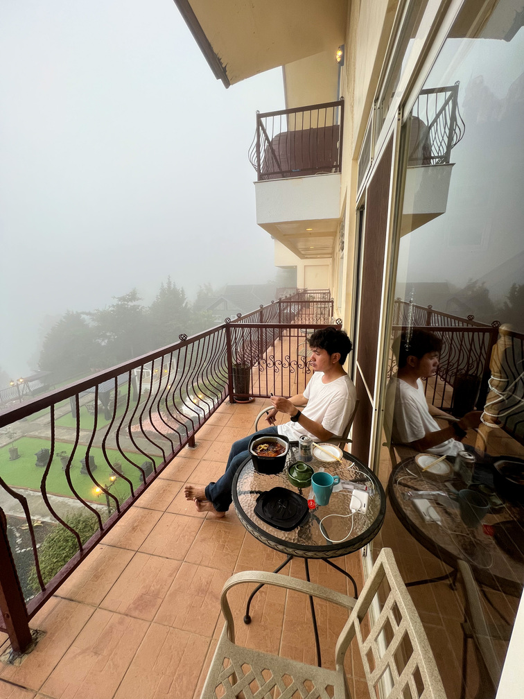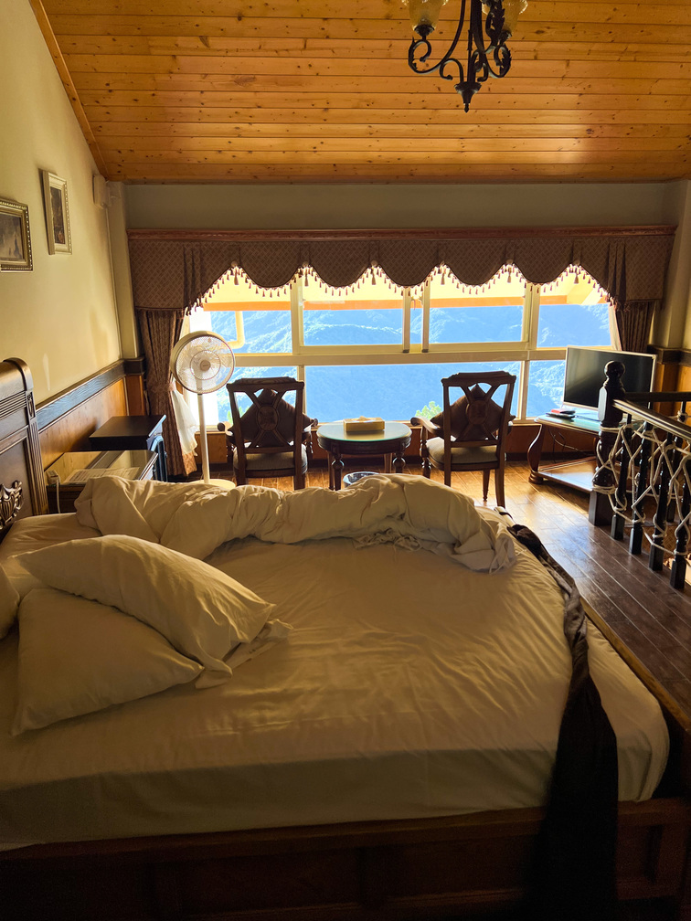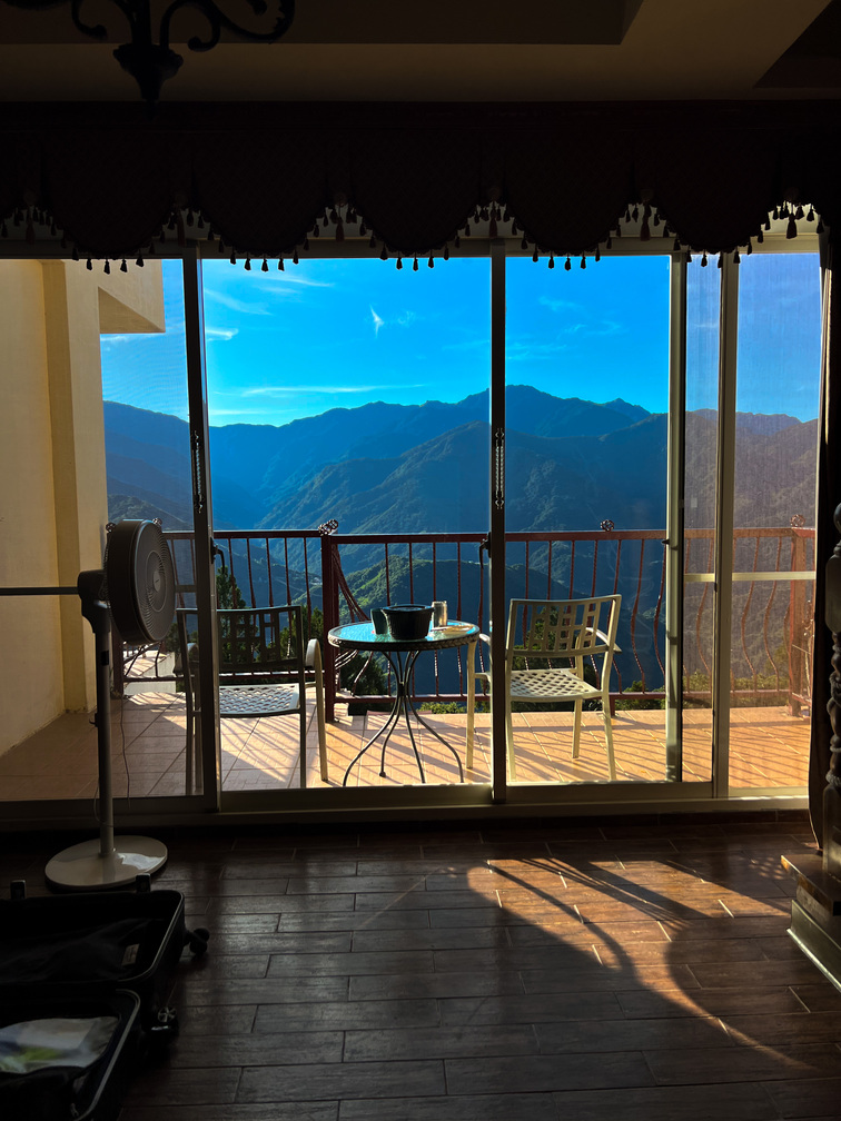 เราเลือกพักห้องพักที่ติดระเบียงเพราะตั้งใจว่าจะได้เห็นวิวภูเขาชัดๆ จากห้องนอน