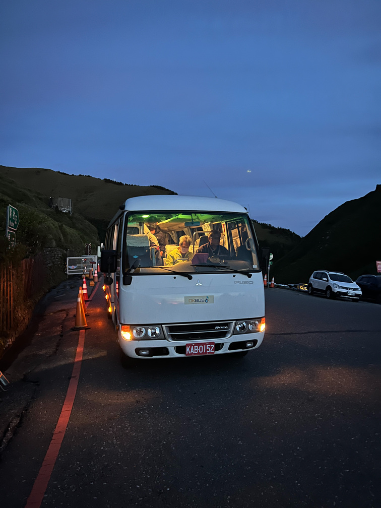 โปรแกรมวันนี้ต้องตื่นแต่เช้าตั้งแต่ตี 3 เพื่อนั่งรถขึ้นไปดูพระอาทิตย์ขึ้นที่เขาเหอหวนซาน เราได้จองทริปรถ minivan โดยจะเป็น Car pool นั่งร่วมกับคนอื่น ซึ่งคนขับจะขับมารับเราถึงโรงแรม และขับแวะรับลูกทัวร์คนอื่นจนครบ แล้วจะขับขึ้นไปบนเขาต่อ