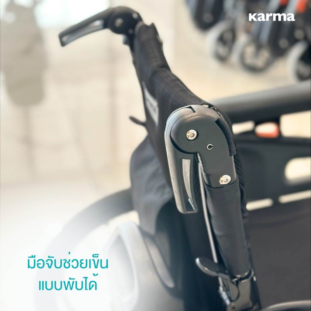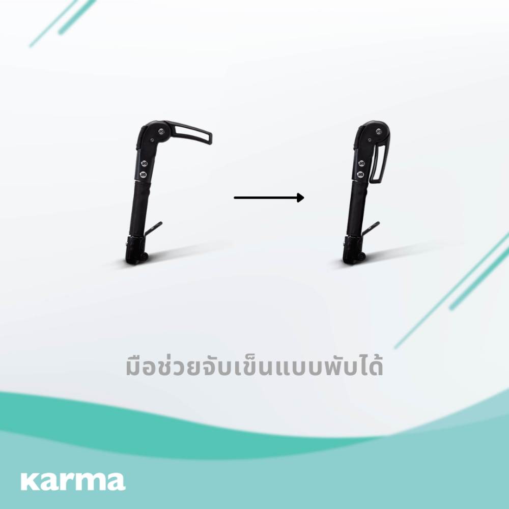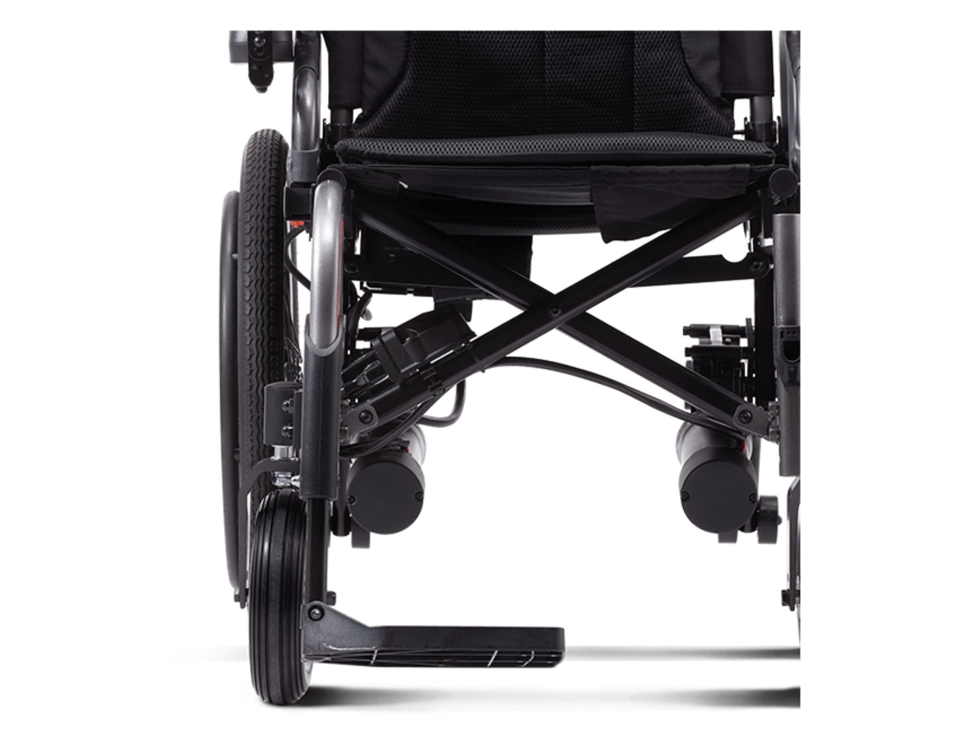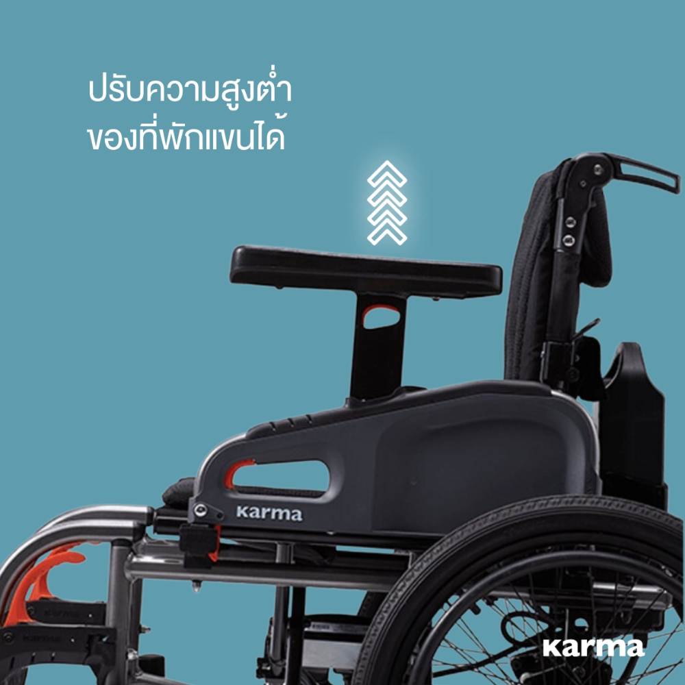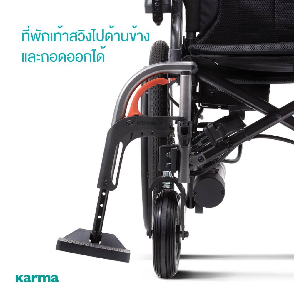 เพิ่มพื้นที่ว่างหน้ารถเข็นวีลแชร์ และยังสามารถถอดที่พักเท้าได้โดยไม่ต้องใข้เครื่งอมือ แผ่นรองเท้าสามารถปรับระดับได้ 39 ซม.ถึง 51 ซม.