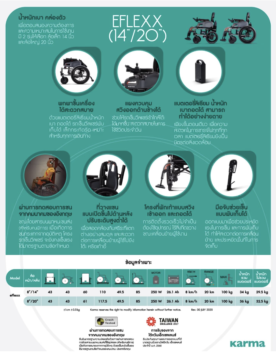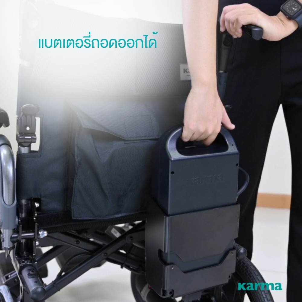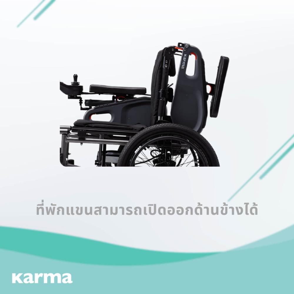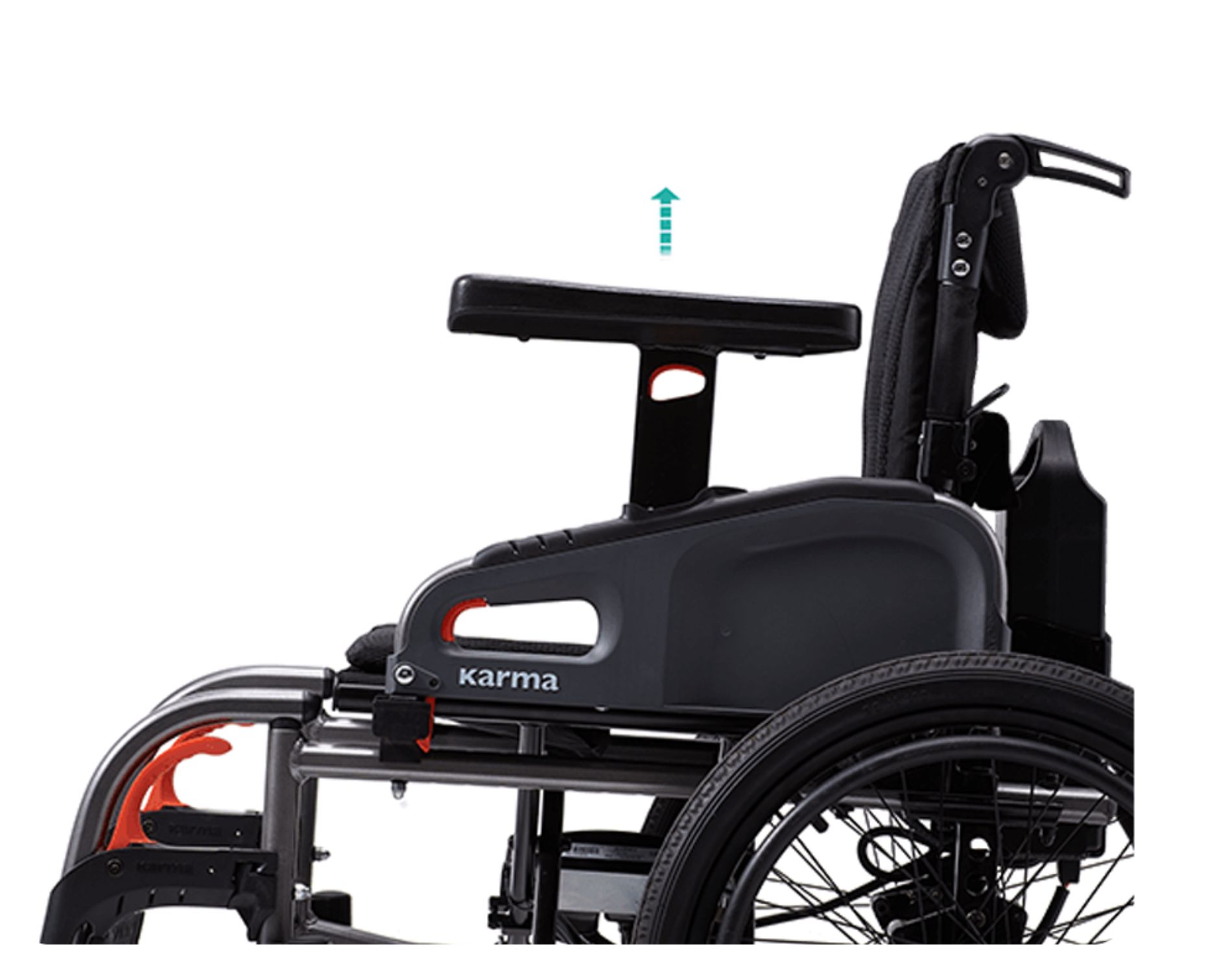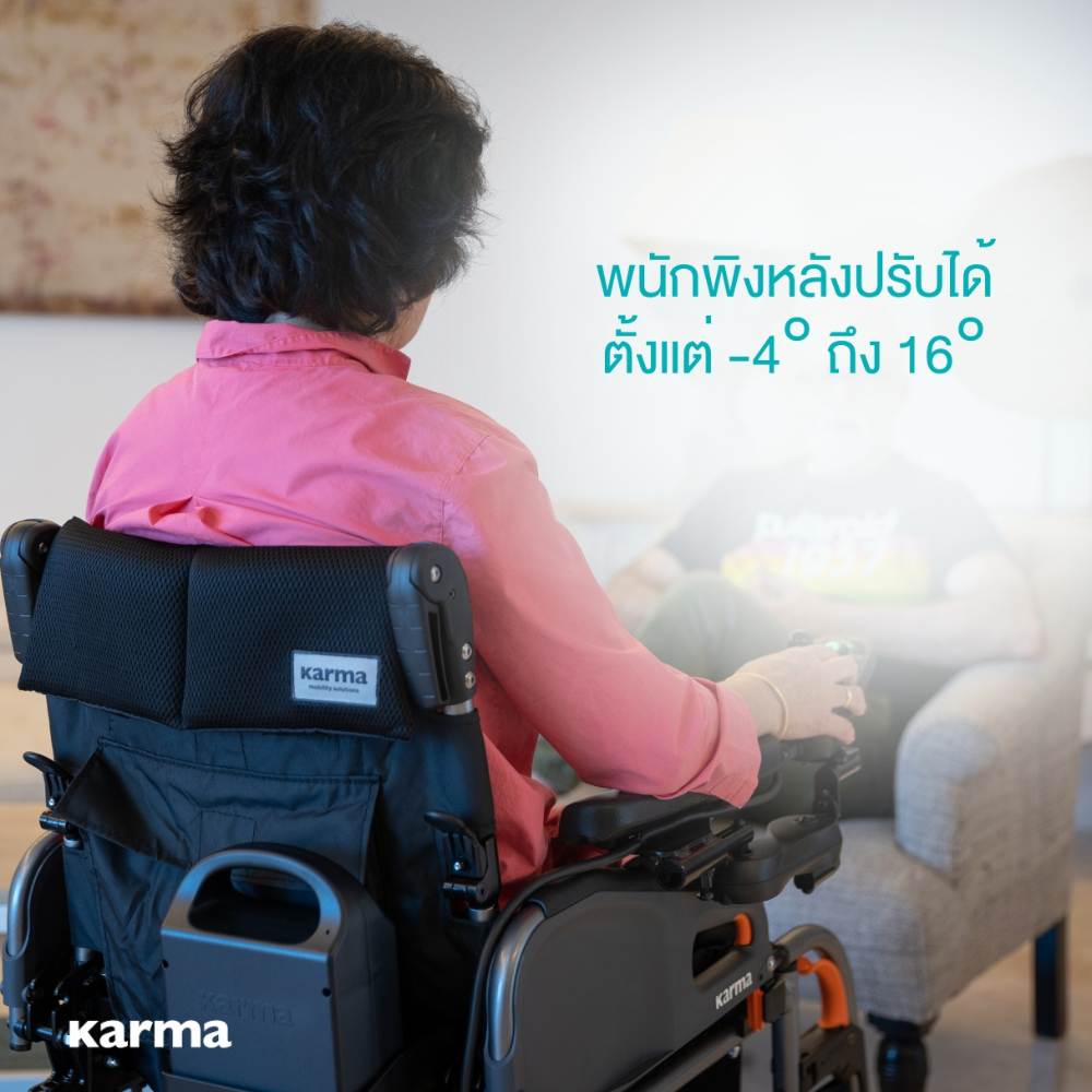 เพิ่มพื้นที่ว่างหน้ารถเข็นวีลแชร์ และยังสามารถถอดที่พักเท้าได้โดยไม่ต้องใข้เครื่งอมือ แผ่นรองเท้าสามารถปรับระดับได้ 39 ซม.ถึง 51 ซม.