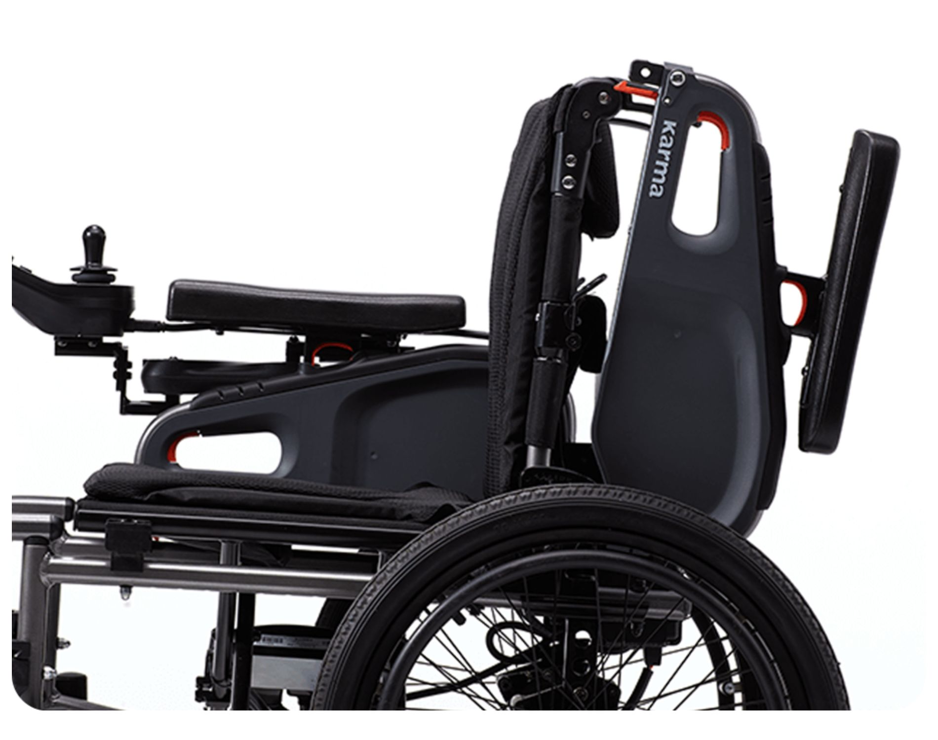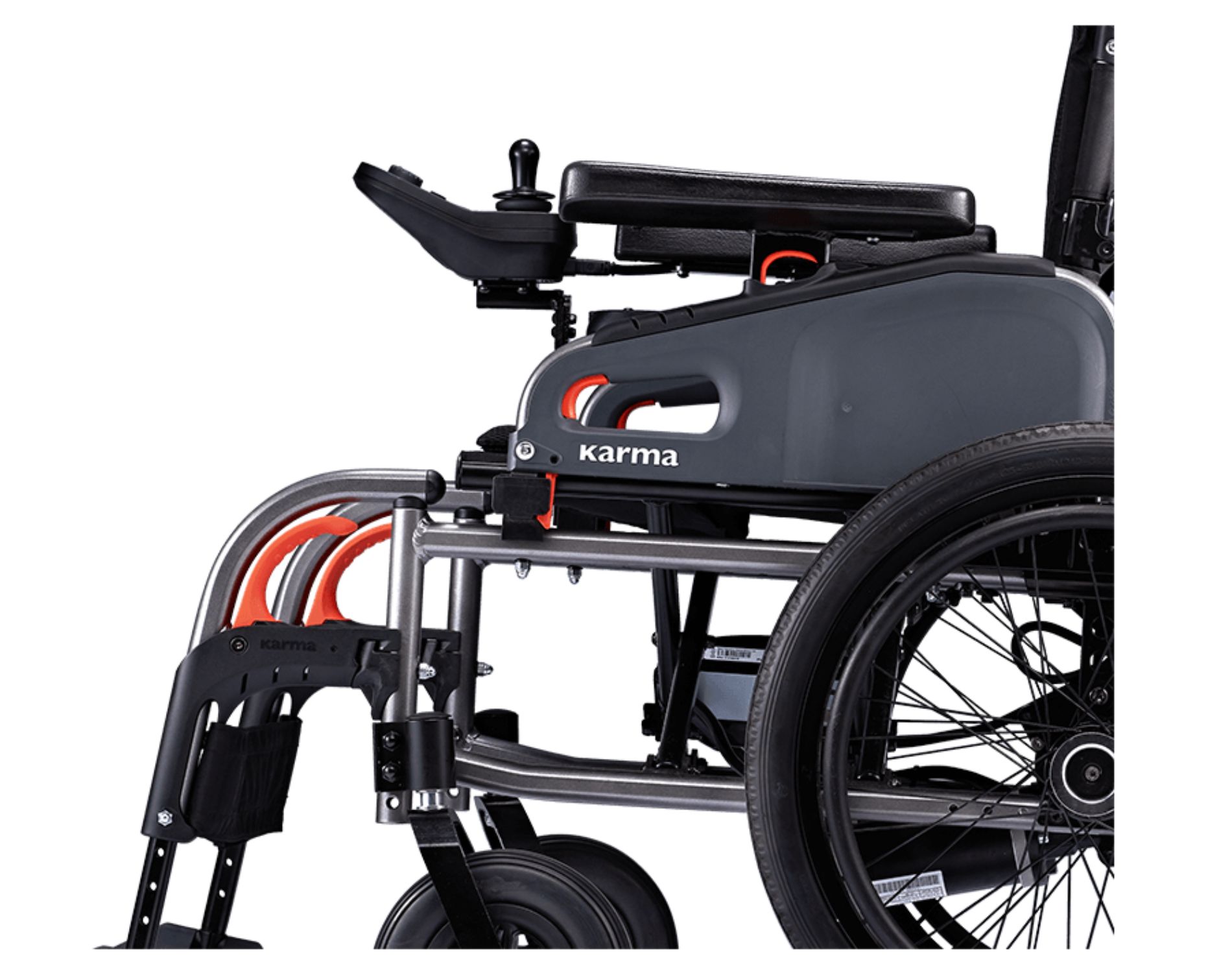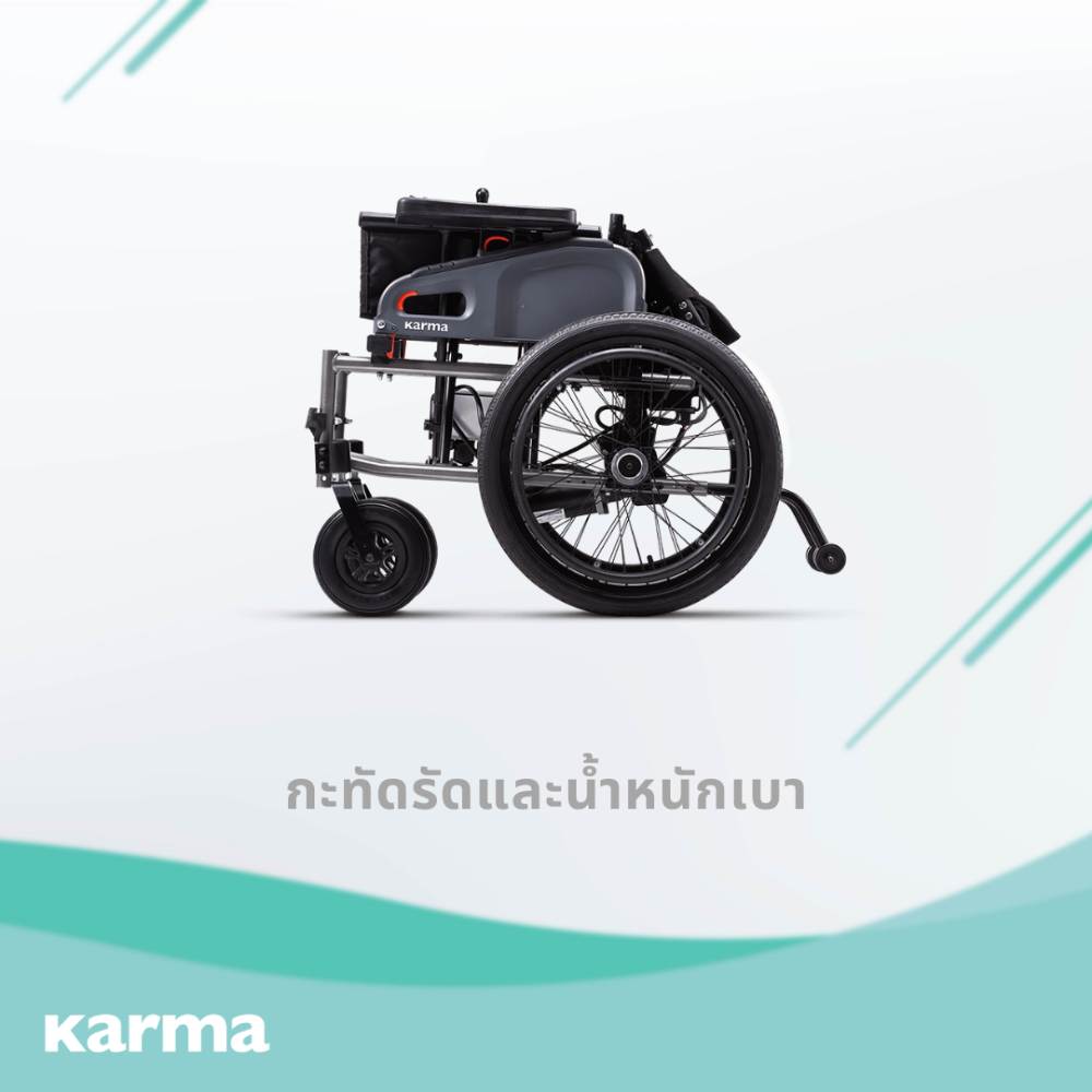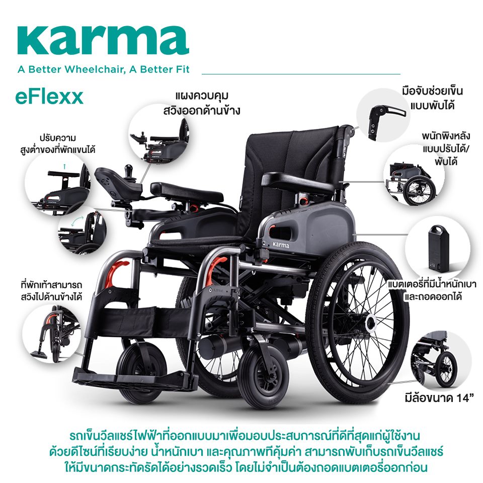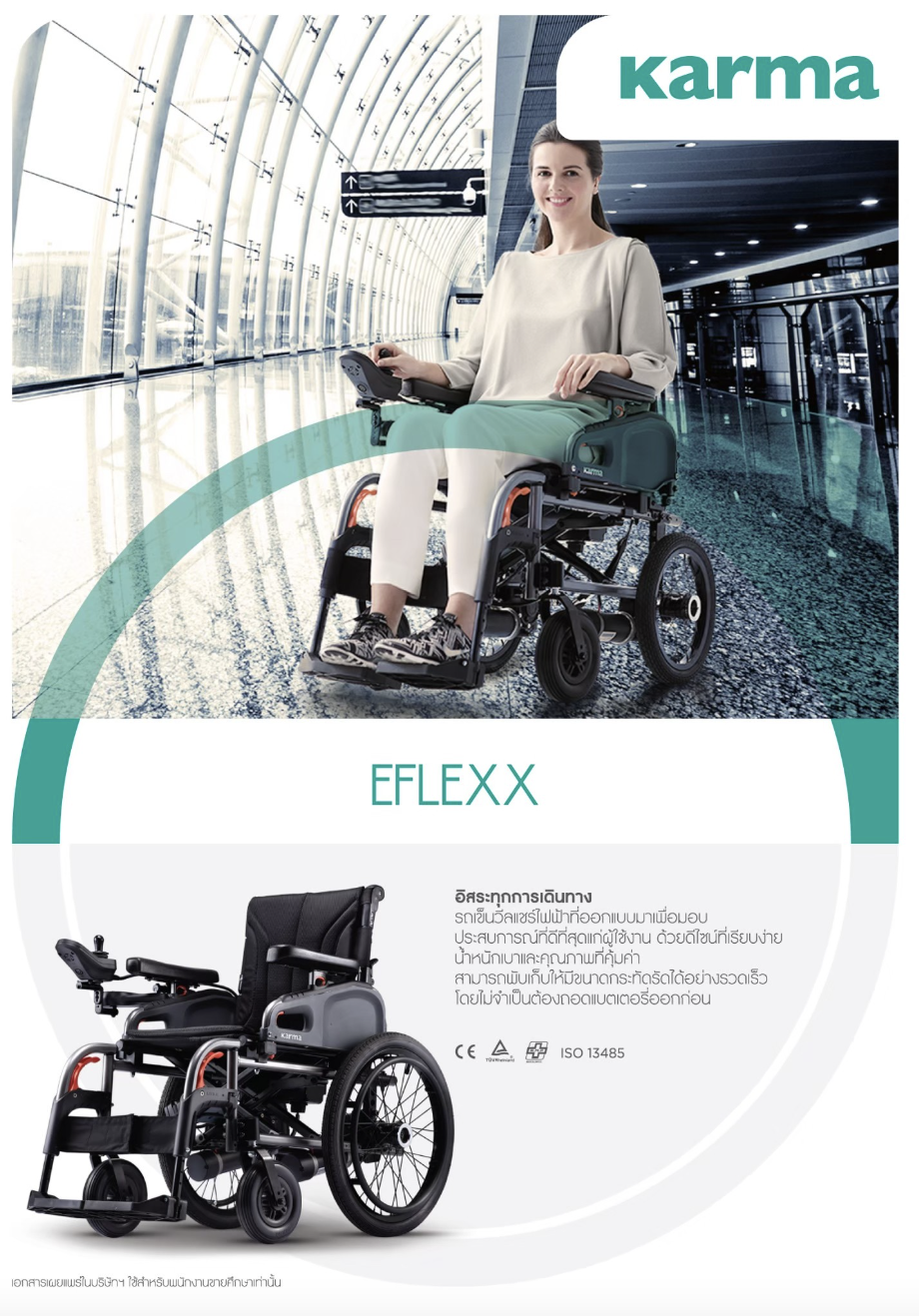 เพิ่มพื้นที่ว่างหน้ารถเข็นวีลแชร์ และยังสามารถถอดที่พักเท้าได้โดยไม่ต้องใข้เครื่งอมือ แผ่นรองเท้าสามารถปรับระดับได้ 39 ซม.ถึง 51 ซม.
