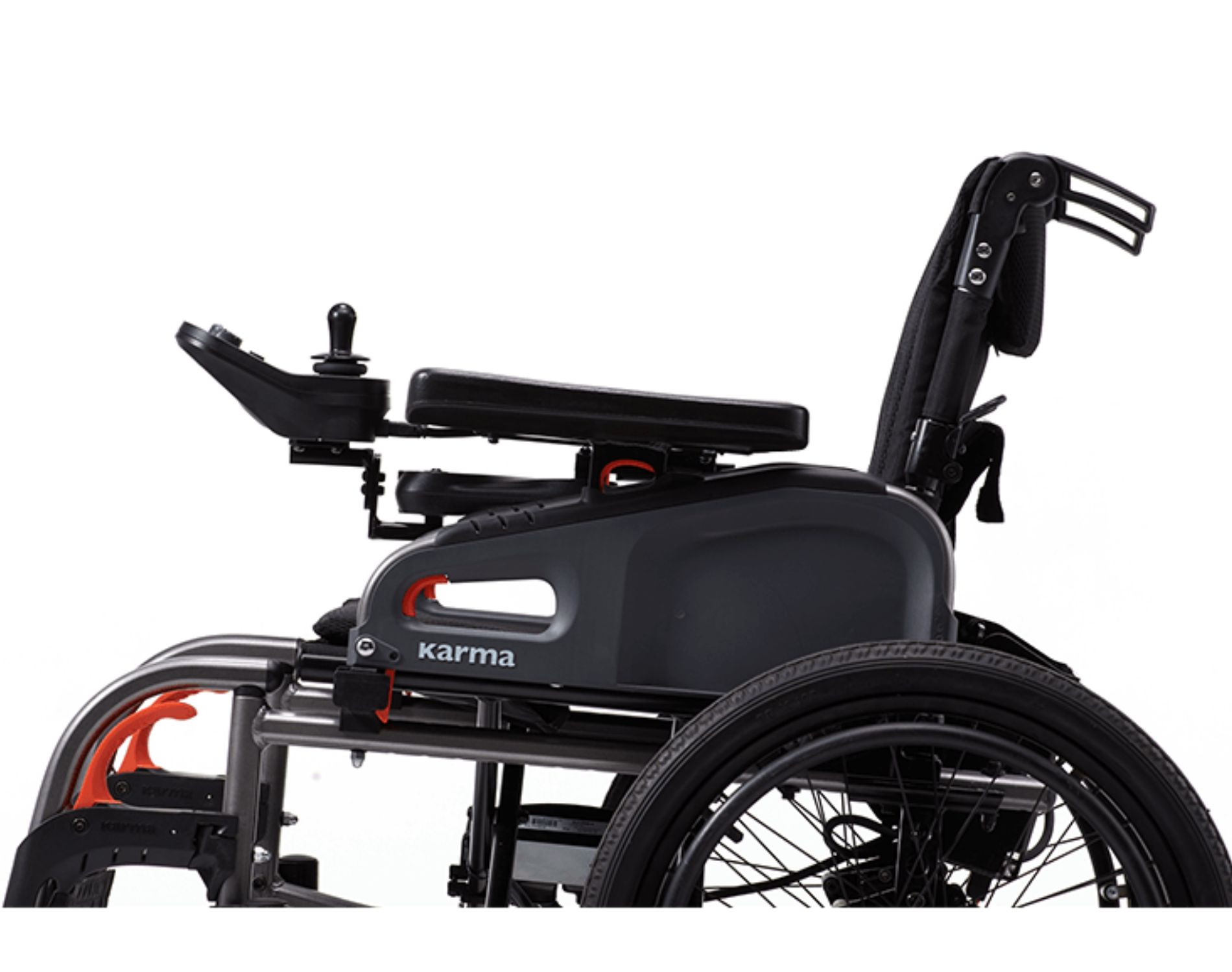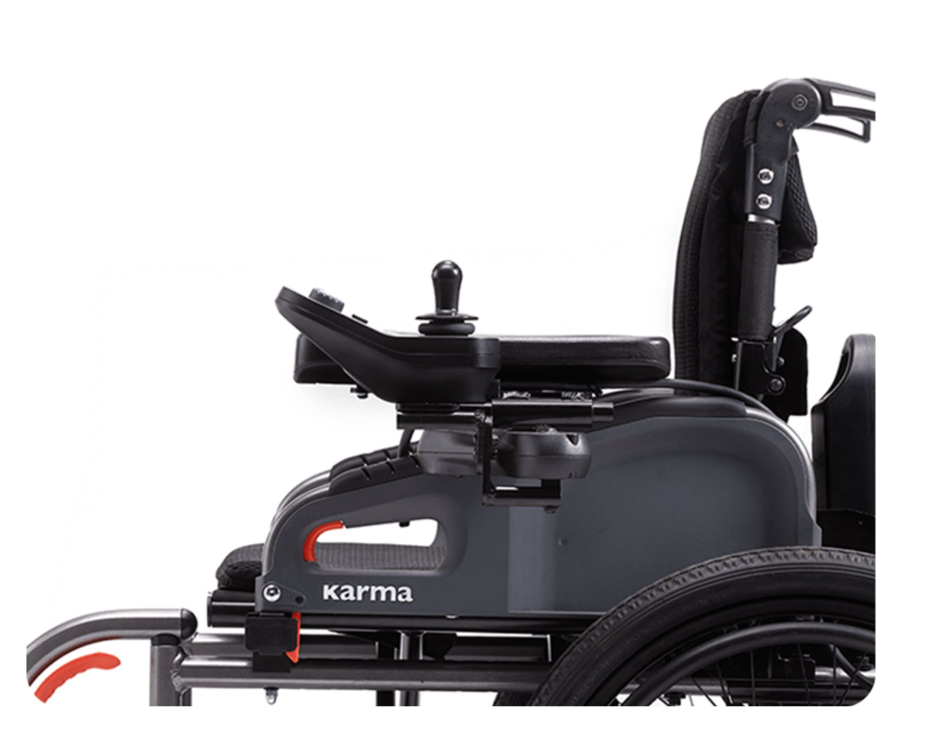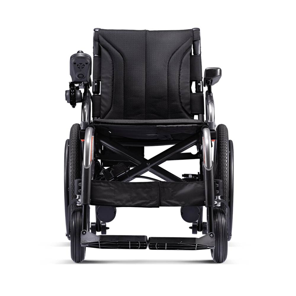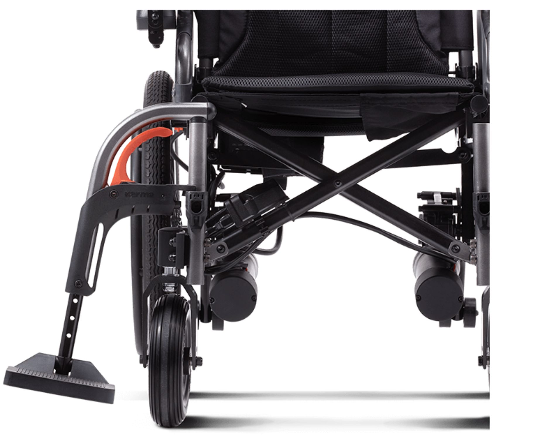 เพิ่มพื้นที่ว่างหน้ารถเข็นวีลแชร์ และยังสามารถถอดที่พักเท้าได้โดยไม่ต้องใข้เครื่งอมือ แผ่นรองเท้าสามารถปรับระดับได้ 39 ซม.ถึง 51 ซม.